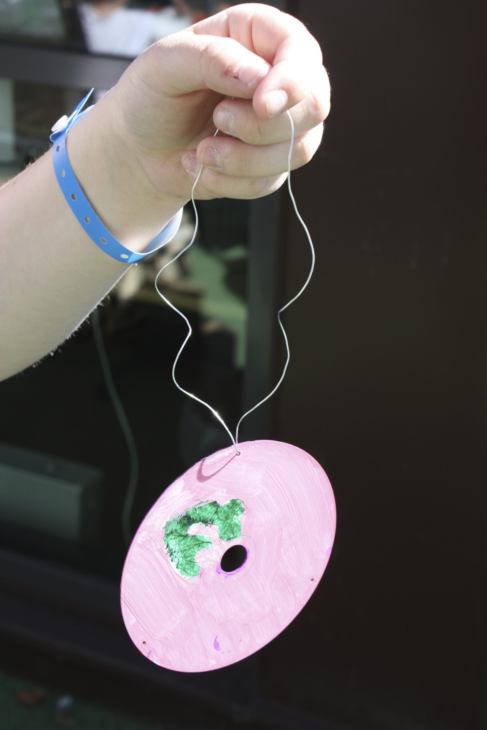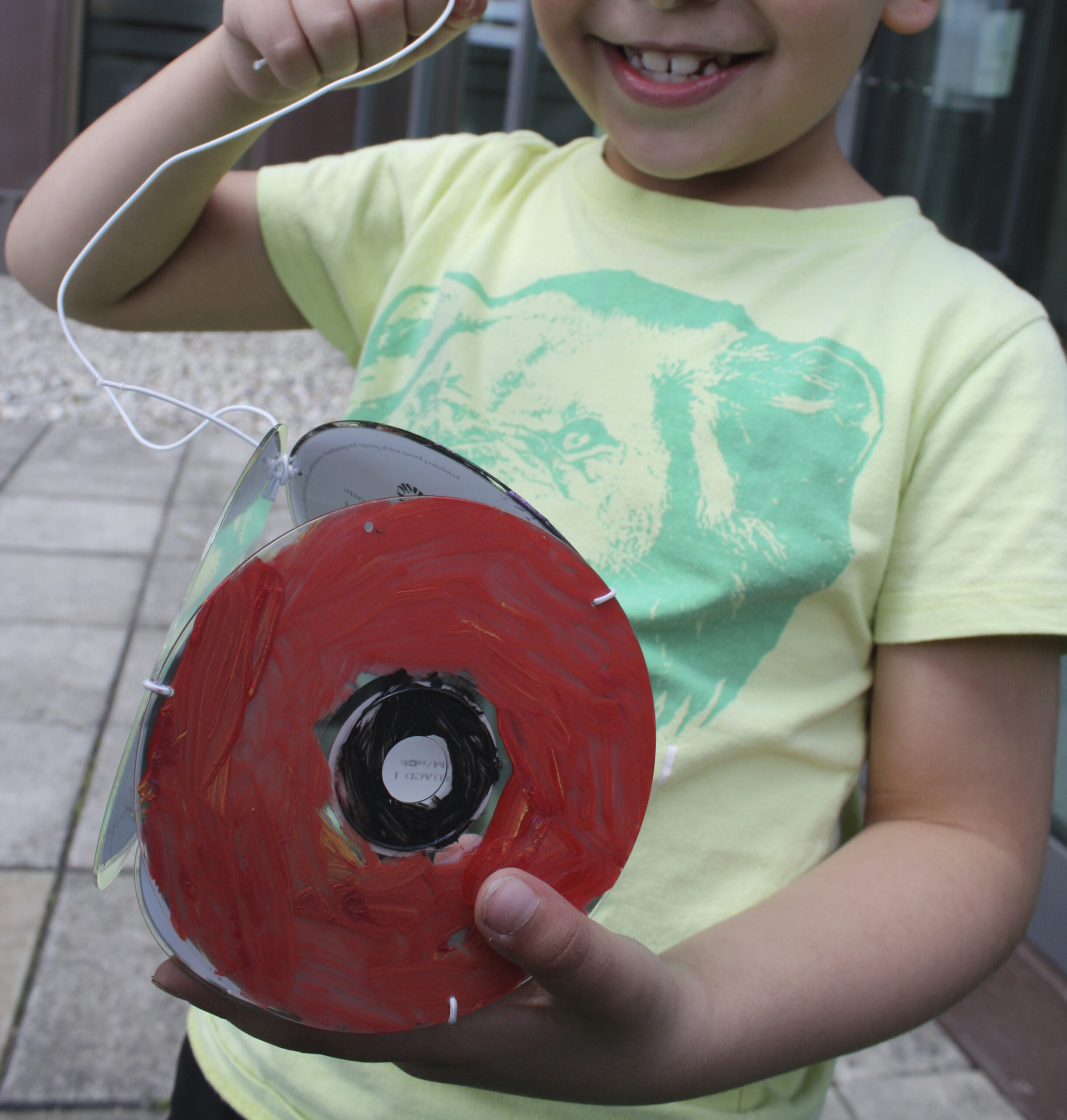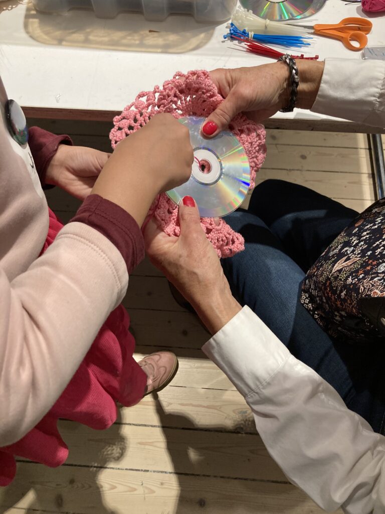 The project also included creative workshops with the patients and their families. In these workshops, my art piece “Vessel of Reflection” – part of Artoteket – was shown as inspiration for the patients to make their own mobiles out of CD:s.