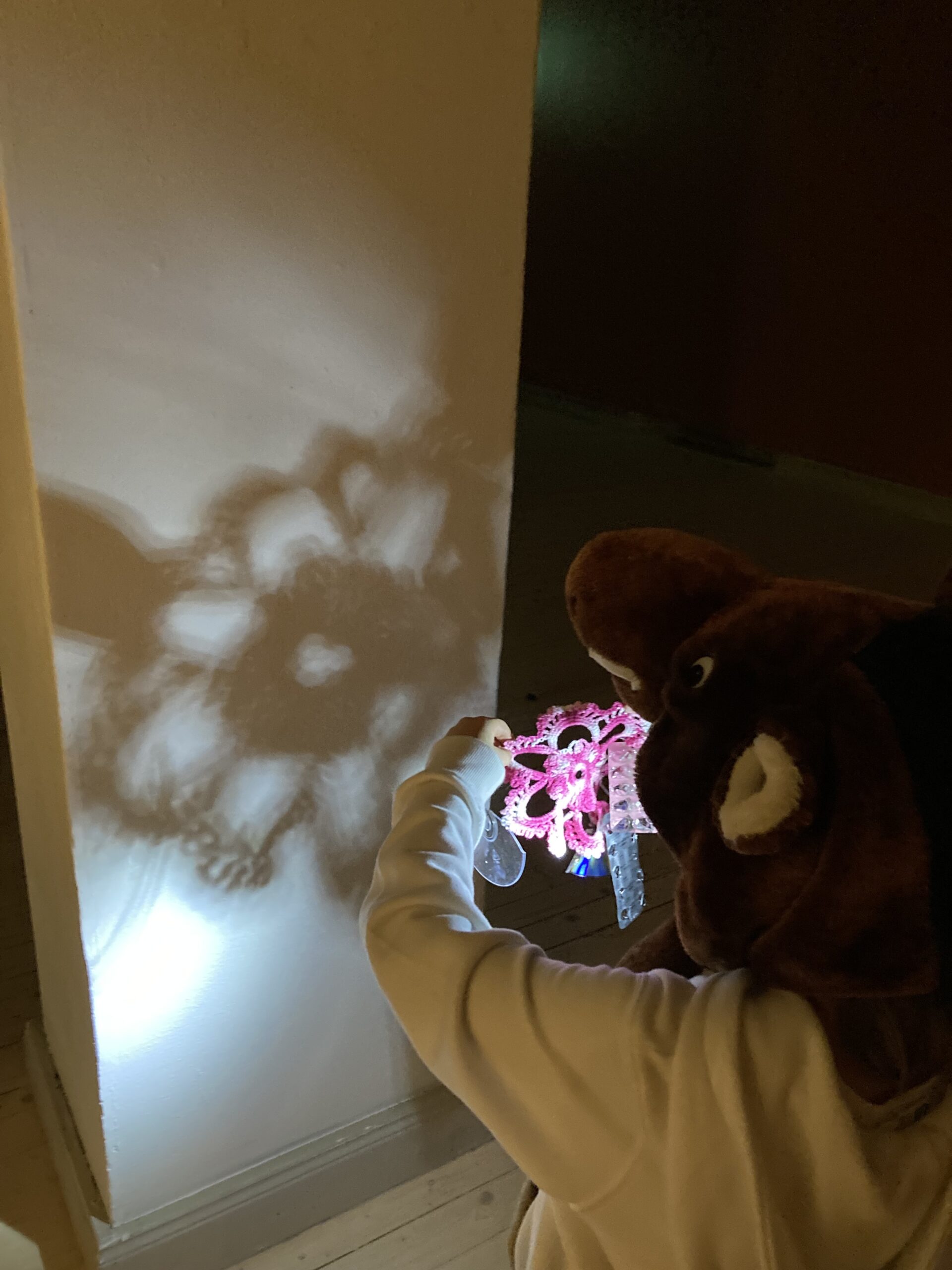 During Bästa Biennalen 2021 in the South of Sweden, I was hosting light laborations for mainly young people at Landskrona Museum although persons of all ages participated. There was recycled everyday material to make objects with in one room and a darker area with mini torches to experiment with the results and light in another. During the evening of “Kulturnatten” on the 5th of November 6-8 pm, I presented some of my own light installations which were also on display during the week of the workshops as inspiration.
