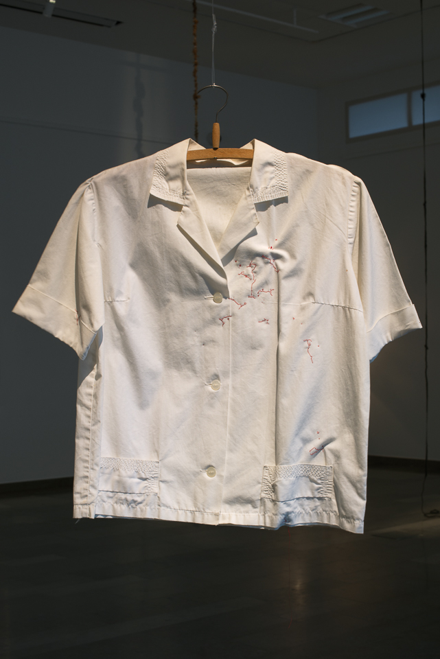 Materials: My maternal grandmother’s blouse, red thread and a re-used coat hanger